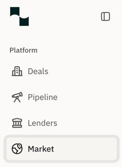 There are three separate modules within the Market tab, all of which serve to provide you with a clear view of current lenders, enabling you to make smarter decisions and navigate the market with ease for your next deal.