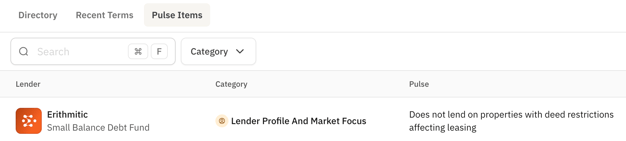 How to leverage the Lender Directory, Recent Terms, and Pulse Items