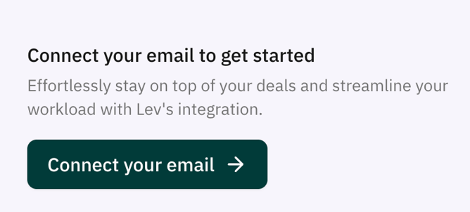 Click the Connect your email button on the homepage to sync your email account, and follow the prompts based on your email domain provider. This is a critical step as it enables launch emails to be sent directly from your account, and ensures all deal-related email threads are consolidated in one place.